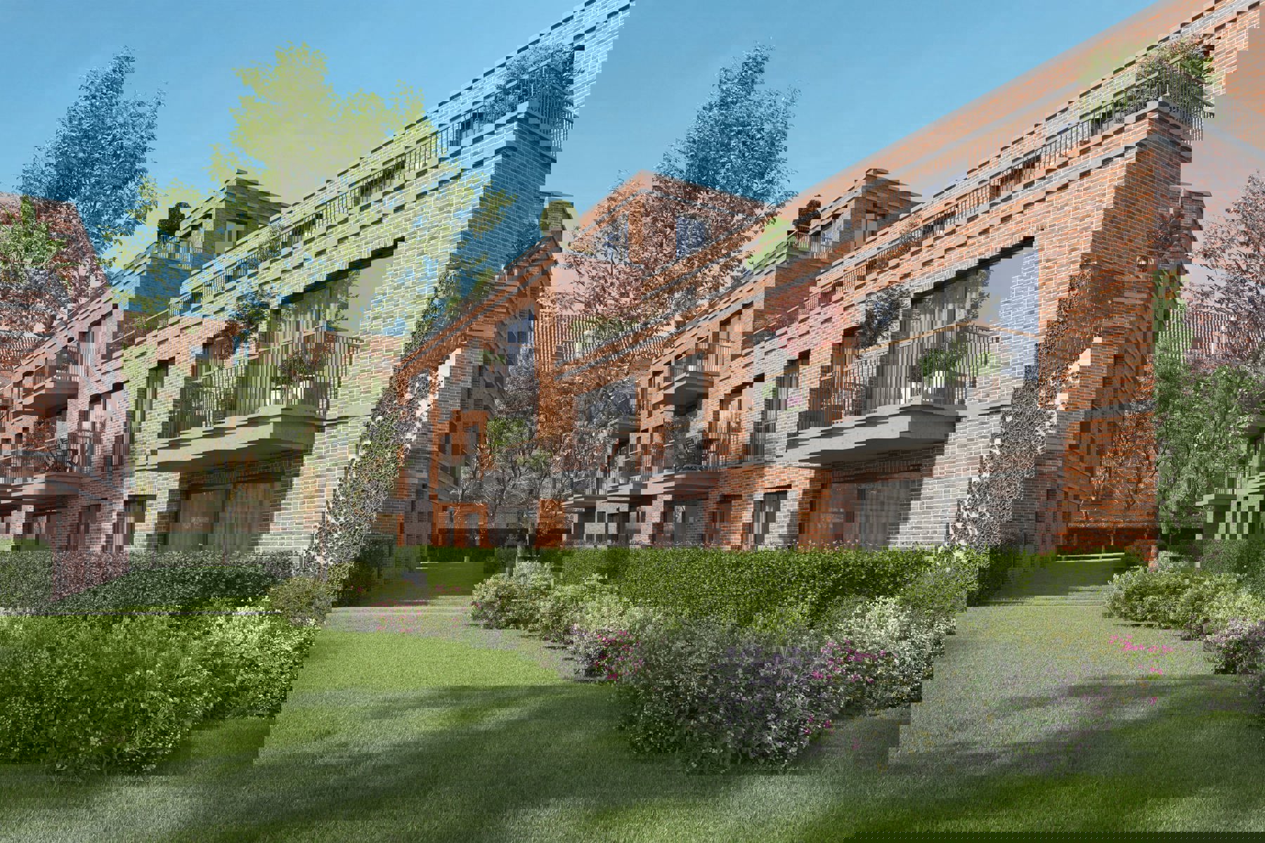 Alle appartementen beschikken over een zonnig terras. De penthouses genieten van een dakterras en de panden op het gelijkvloers beschikken over een privatieve tuin.