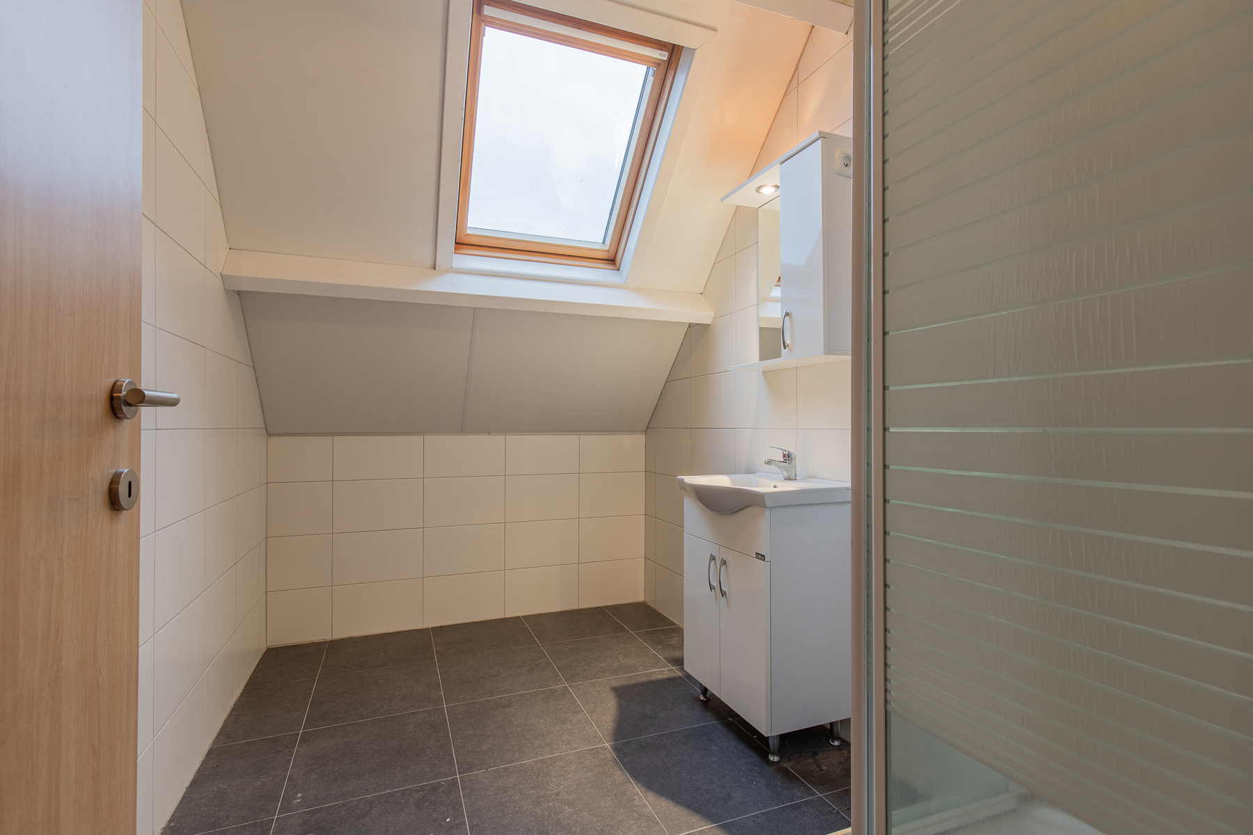 Op de tweede verdieping tref je nog twee slaapkamers en een badkamer met douche en lavabomeubel.